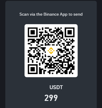 How to pay: Scan the bar code by Binance Pay to send 299 USDT